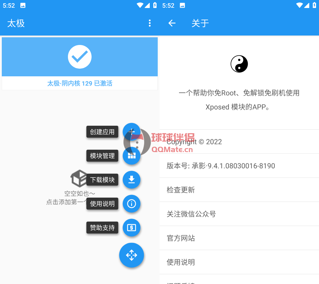 太极·阴是普通版,太极·阳是增强版,普通版无法作用系统APP,且大部分Xposed模块不能免ROOT加载