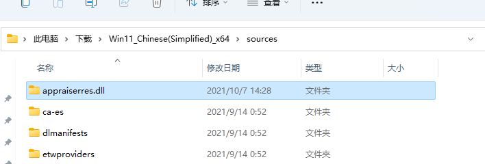 解压完成后找到 sources 文件夹里面的 appraiserres.dll 文件并把它删除