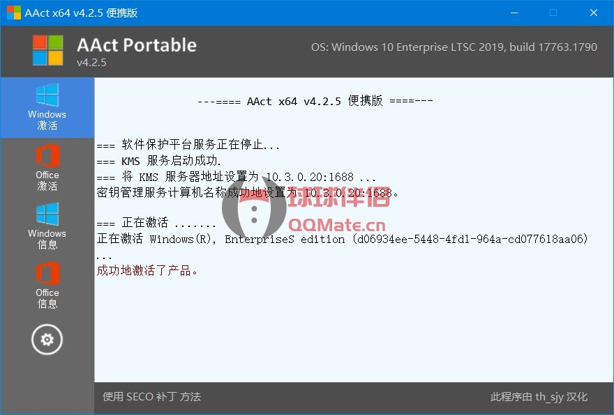 AAct是由俄罗斯人@Ratiborus开发的一款小巧实用的Office/Win10KMS激活工具,自动设置密钥激活Windows/Office产品.AAct中文版支持本地离线KMS激活,安装及删除激活产品密钥,创建及删除续期计划任务,AAct激活工具无需.NET Framework框架,相比其它激活工具,体积小巧,单执行文件,绿色无残留,激活成功率高.