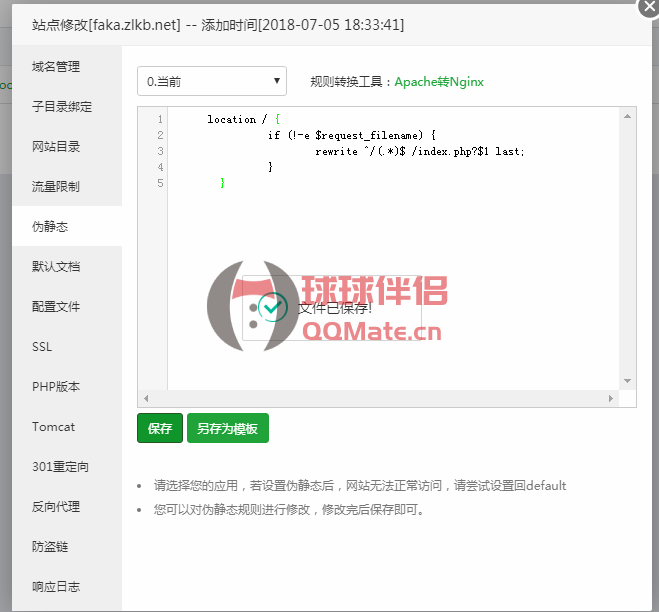 推荐使用宝塔面板进行操作,比较简单,以防止出现错误