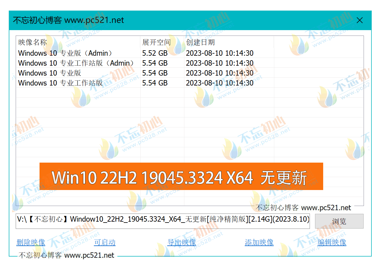 文件名称: 【不忘初心】Windows10_22H2_19045.4291_X64_无更新[纯净精简版][2.18G](2024.4.11).iso