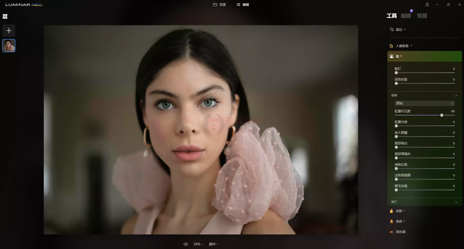 3、使用图层和 AI 遮罩释放您的创造力:同时使用 MaskAI 和 Layers 以获得无限的创造力。 MaskAI 通过识别图像中的对象并创建精确的蒙版来自动化蒙版过程。如果您愿意,您始终可以使用画笔手动优化这些蒙版。图层开启了全新的创意表达水平,为您的图像添加对象、纹理、水印和任何其他图形提供了无限可能。