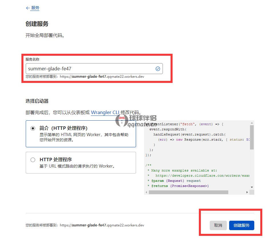 这里 服务名称 可以修改自定义 然后点击 创建服务