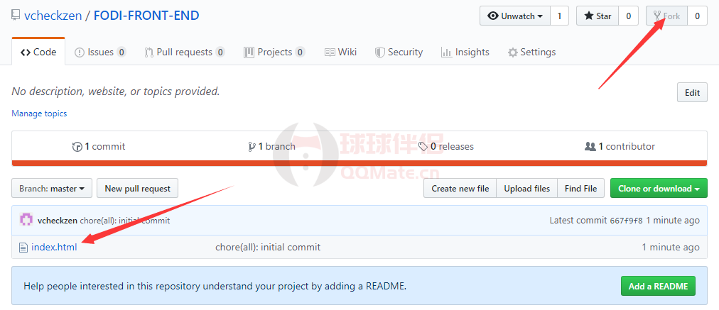 注册并登录 Github,随后打开 该仓库,点击靠近右上角的 Fork。稍等片刻,打开页面中部的 index.html。