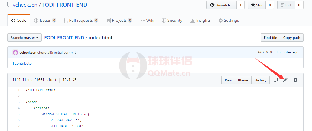 点击靠近 右上角 的 铅笔 按钮,编辑该文件。