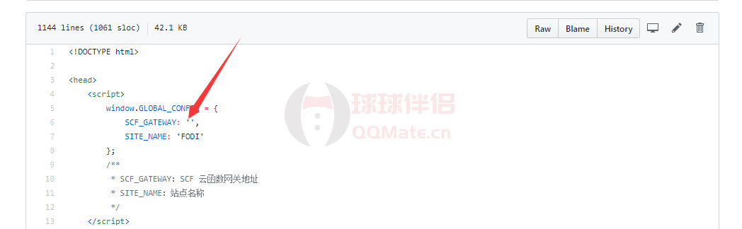 将你上方 worker 过墙提速的 定义域名 填写到 index.html 的 SCF_GATEWAY 变量对应的引号中。SITE_NAME 变量是 站点名称,可以随意修改。