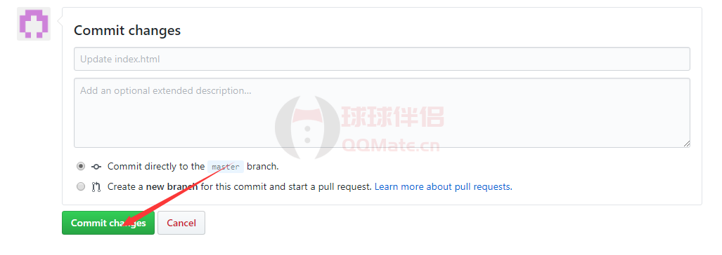填写完毕后点击靠近页面最下方的 Commit changes。