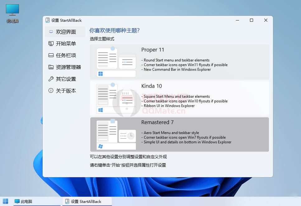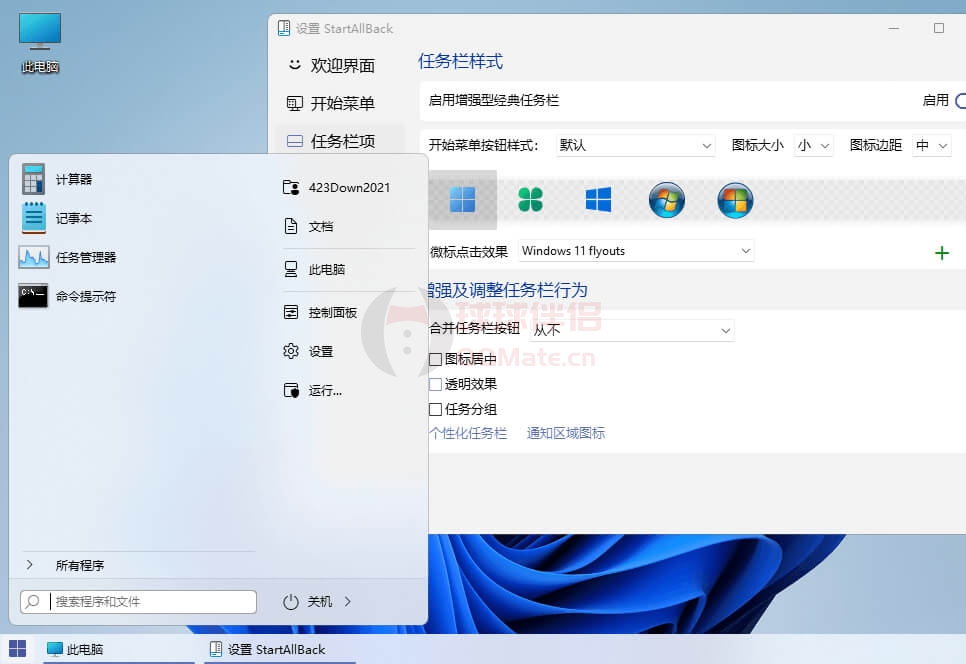 StartAllBack中文版(StartIsBack++)是一款Win11开始菜单工具,可以为Windows11恢复经典样式Windows7主题风格开始菜单和任务栏及资源管理器,功能包括:自定义开始菜单样式和操作,个性化任务栏及资源管理器.