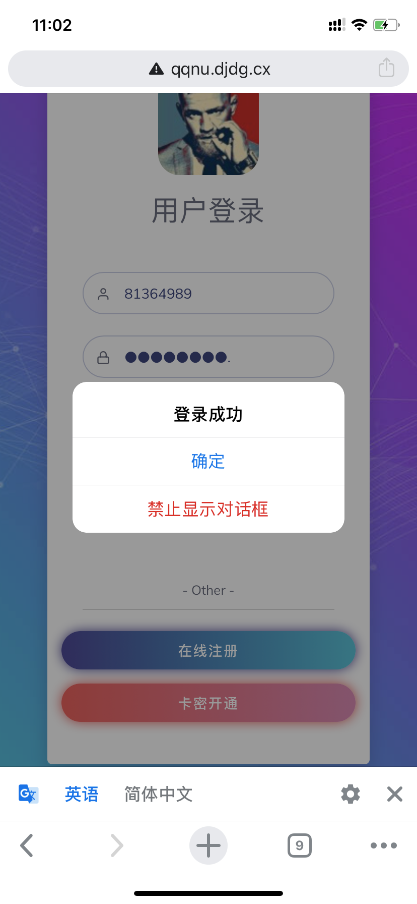 成功购买卡密后前往 ndg.uubu.cn 开通使用 依次输入您的QQ号码、QQ密码、爱准挂卡密、选择你所在省份,点击开通,按照提示一步一步操作。