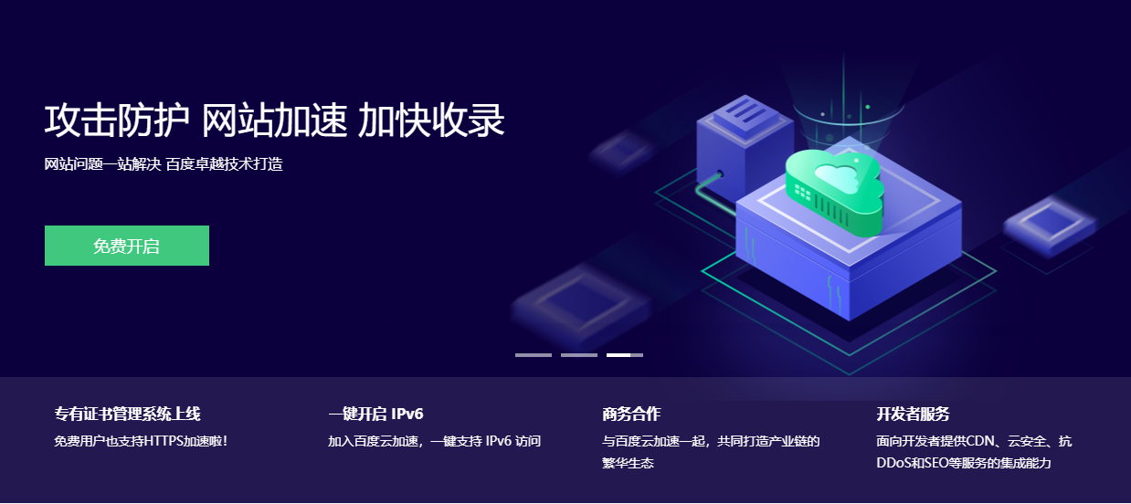 百度云加速是国内比较早的CDN加速服务商之一,不仅可以免费使用,同时还带有防御功能。