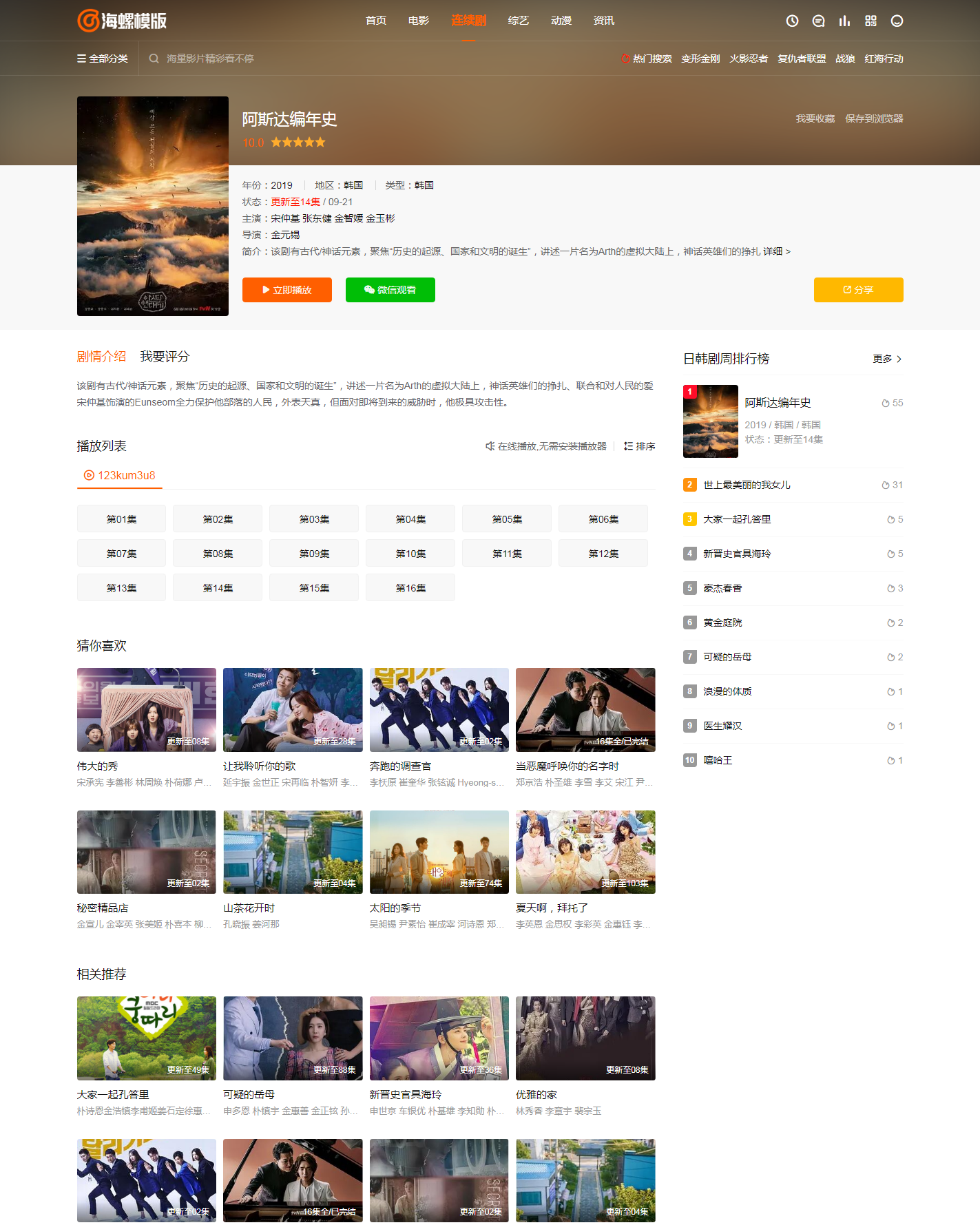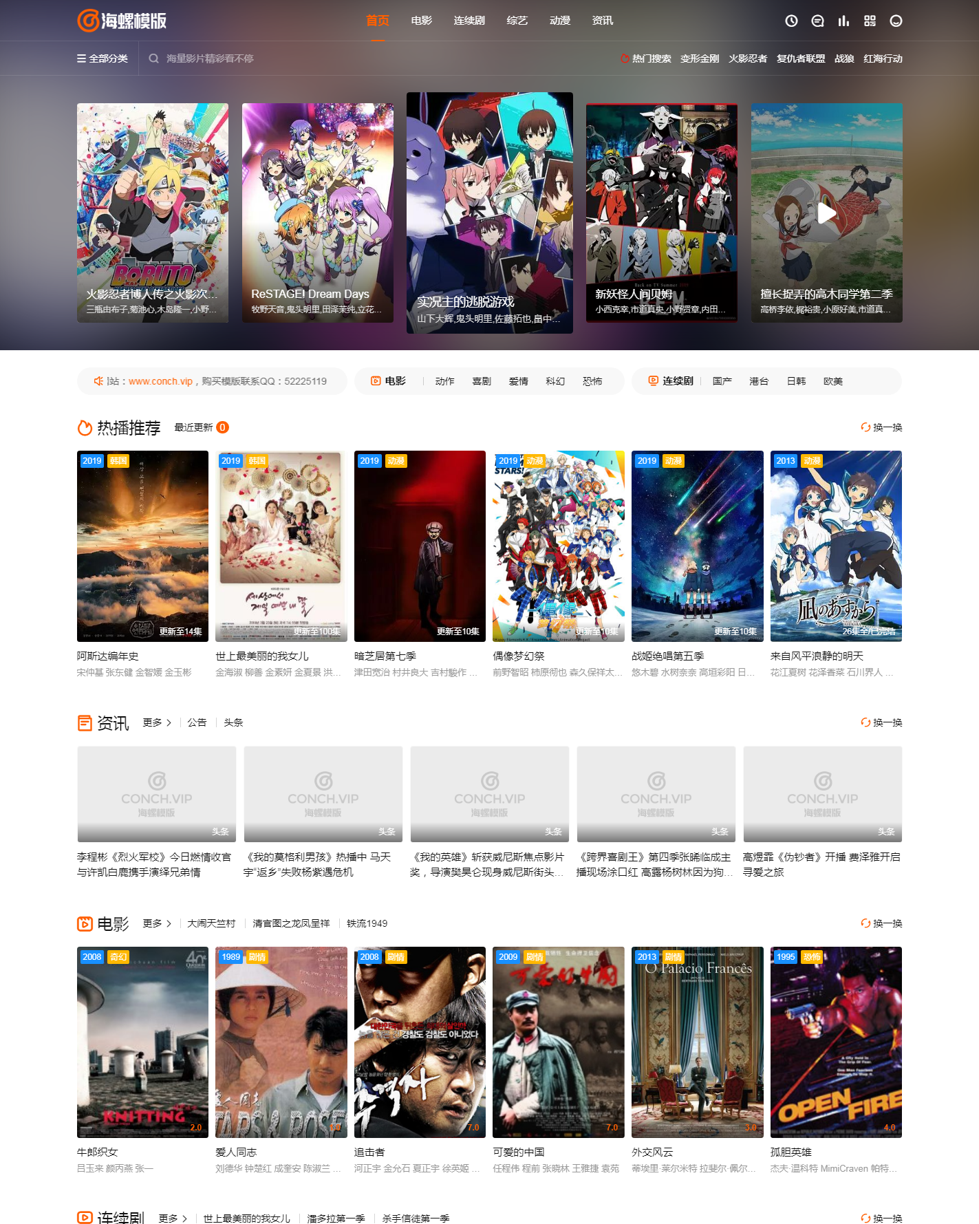注:海螺主题前身是原正版爱看模板 因爱看关键词被盗版抢刷因此更名海螺主题