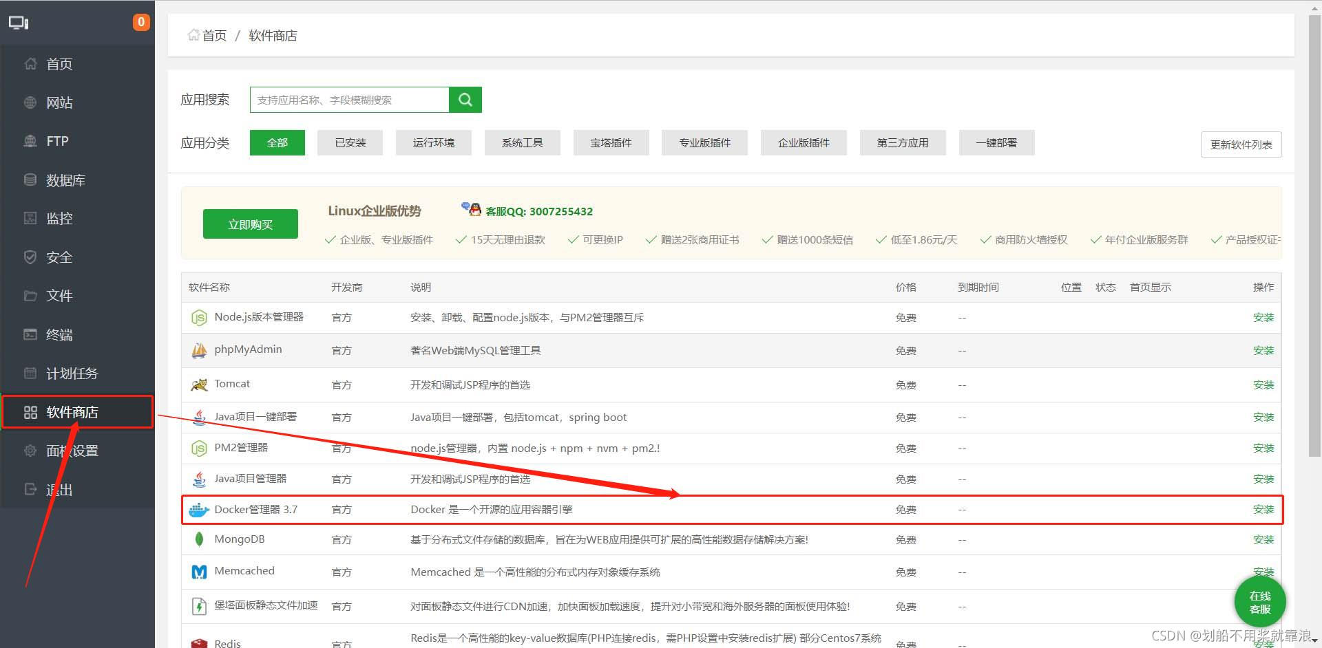 宝塔面板 ==》软件商店 ==》Docker管理器