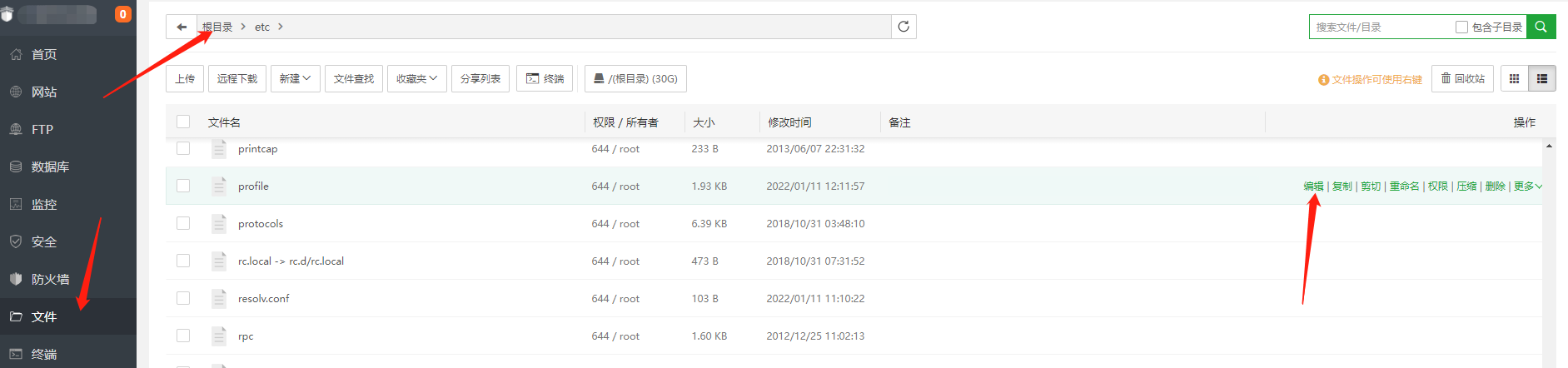这个时候就用到宝塔面板的【文件】功能了,点击编辑,下拉到最后,回车换行,粘贴,保存。非常好用