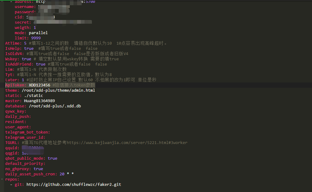 答:配置文件都写着了 master: 123456 #这里写plus版的密码,并删除本注释