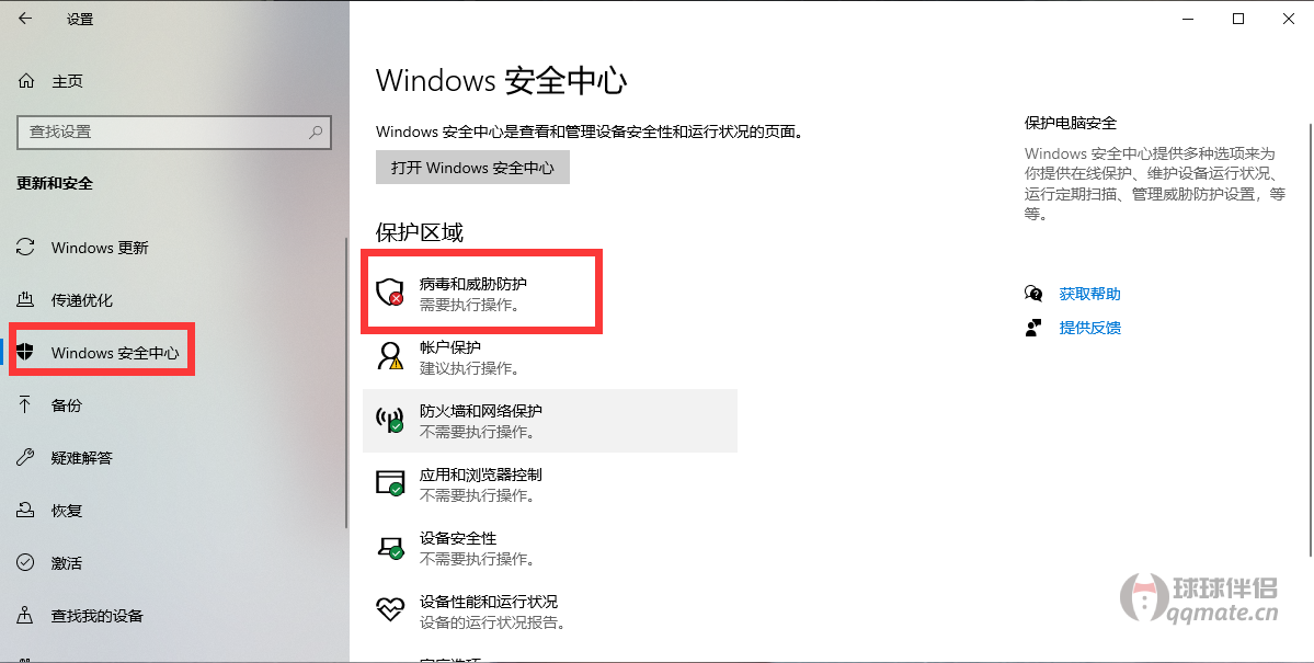 注意1:有些同学打开“Windows安全中心”后,右边是空白,无法进行操作,这时我们用一键开启关闭WD小工具中的开启功能先将WD开启,然后重启系统后就可以操作了~